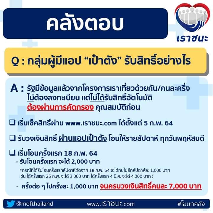 Source: pbs.twimg.com เช็กเงื่อนไข เราชนะ เยียวยาโควิดรอบ2 แจก 3,500 บาท 2 เดือน ใครได้แน่ ใครถูกตัดสิทธิ ใครบ้างต้องลงทะเบียน. อัพเดทยอดลงทะเบียนในโครงการเราชนะ ล่าสุด มีจำนวนผู้ลงทะเบียนกว่า 3.69 ล้านคนแล้ว กระทรวงการคลัง ยืนยันระบบยังสามารถรองรับการลงทะเบียนได้. เคาะโครงการเยียวยา เราชนะ วันพรุ่งนี้ (19 ม.ค.) อัปเดตข้อมูลล่าสุดวันนี้ โครงการเราชนะ ยังเปิดรับลงทะเบียน ตรวจสอบสิทธิ ผ่าน www.เราชนะ.com คลังตอบเงื่อนไขร้านค้า การใช้สิทธิ ทบทวนสิทธิ เปิด. คลัง แจ้งผ่านคุณสมบัติ เราชนะ ล่าสุด 5.77 ล.คน เผยเงินเข้ากระเป๋าแล้ว กว่า 27 ล้านคน